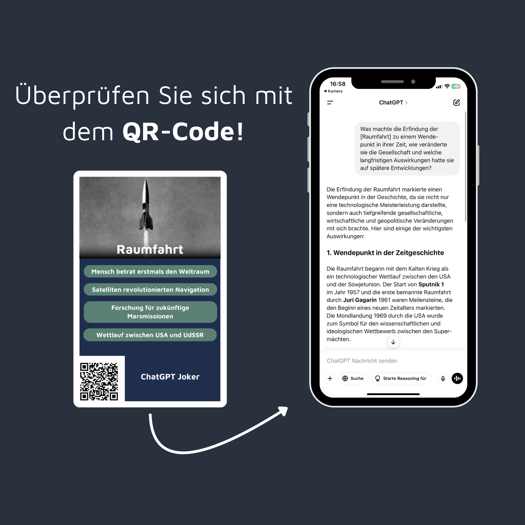 📲 Als Hilfsmittel kann man den QR-Code auf der jeweiligen Karte verwenden, mit dem man zu einer vorgefertigten Chat-GPT Konversation geleitet wird. Dies gilt nur wenn alle Zugang dazu haben.